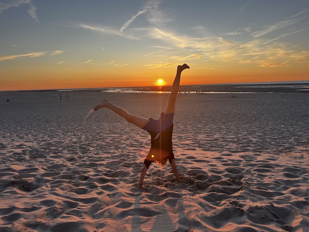 Mijn zus en ik zitten op het strand in Portugal. Voor ons spelen twee jongens van een jaar of acht, negen.…